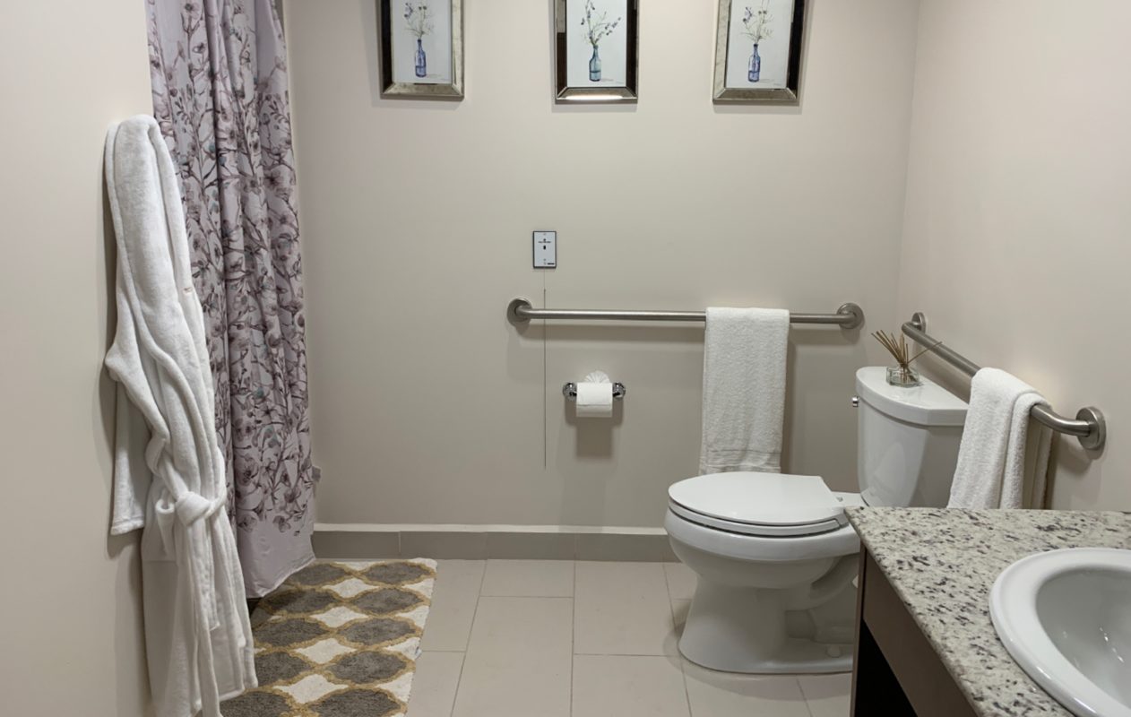 * Baño con regadera fácil acceso y barras de seguridad.