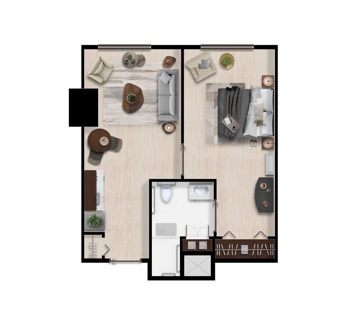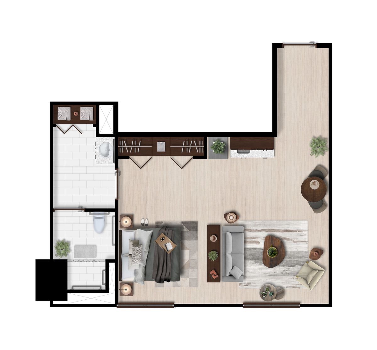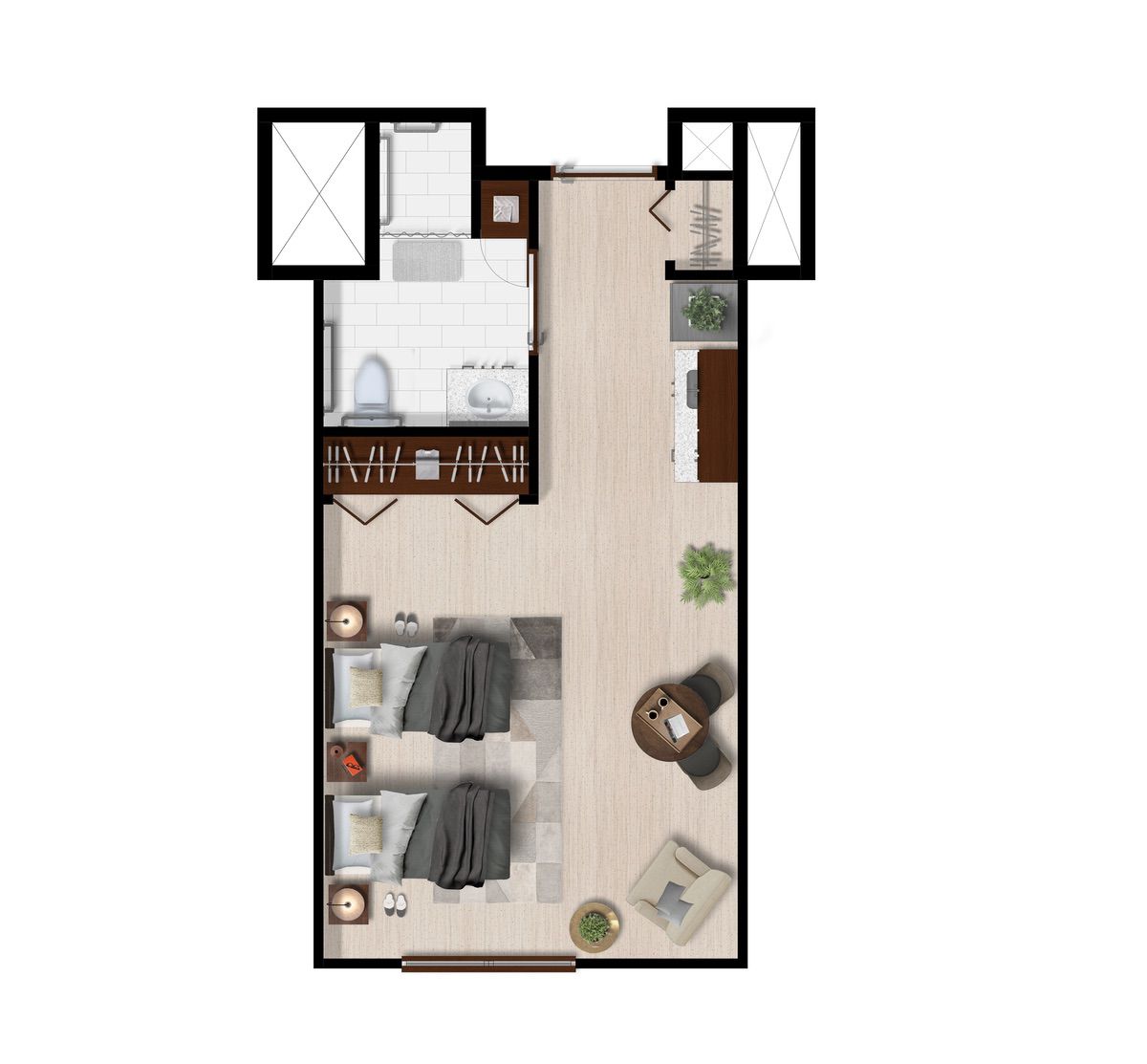 Ofrecemos diferentes opciones de distribución para cada tipo de suite, por lo que los planos pueden variar.