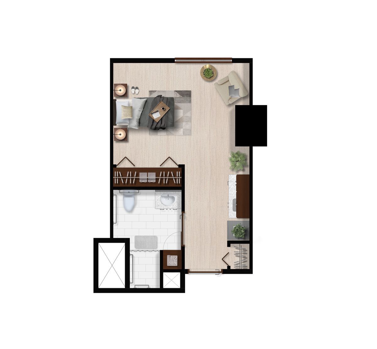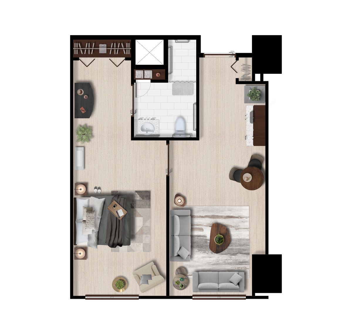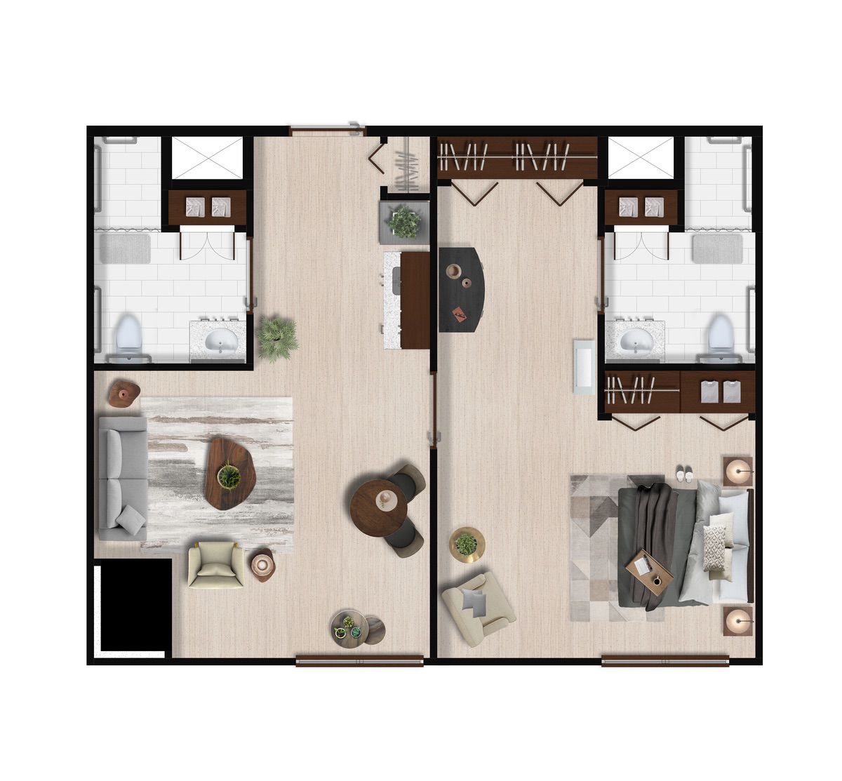 Ofrecemos diferentes opciones de distribución para cada tipo de suite, por lo que los planos pueden variar.