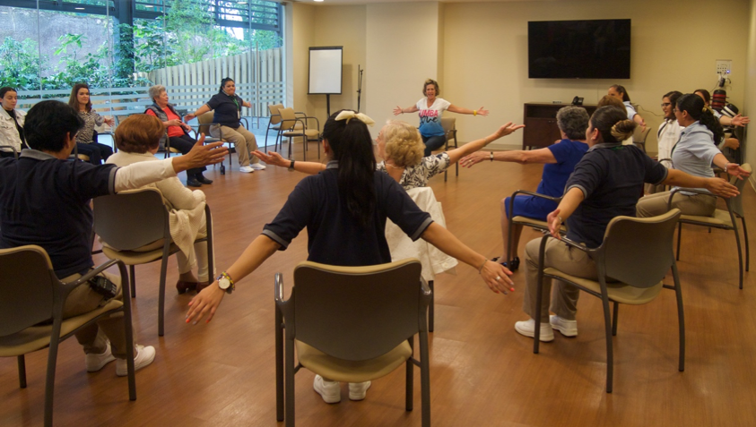 Se asigna a cada residente un cuidador, quien está ampliamente capacitado para ayudarle a realizar las actividades de la vida diaria, como ir el baño, bañarse, arreglarse, vestirse y transitar por la comunidad
